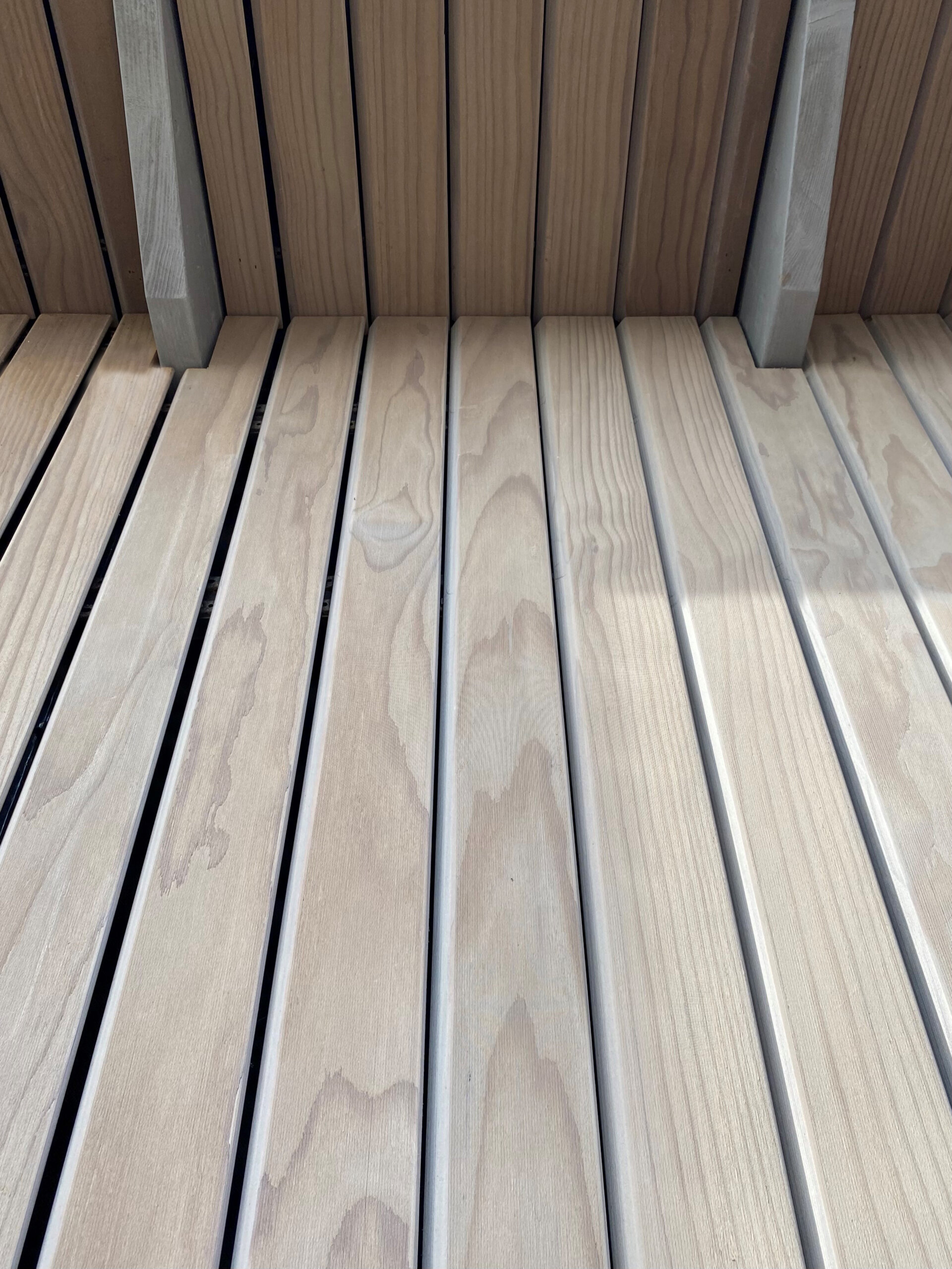 Thermal treatment results in good stability. Additionally, narrower 100mm and 125mm boards offer additional stability over wider flatsawn boards.