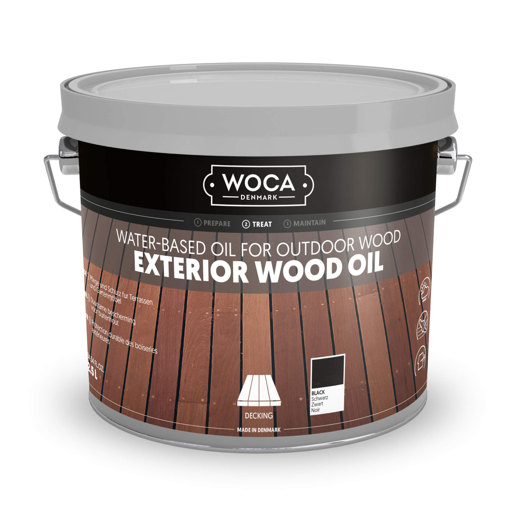 We currently stock WOCA Exterior Oil in Black (2.5L).